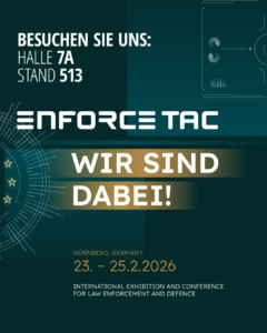 Wir sehen uns Ende Februar auf der Enforce Tac 2026 in Nürnberg. Sie finden uns in Halle 7A an Stand 513 zusammen mit unseren Freunden von Waimex